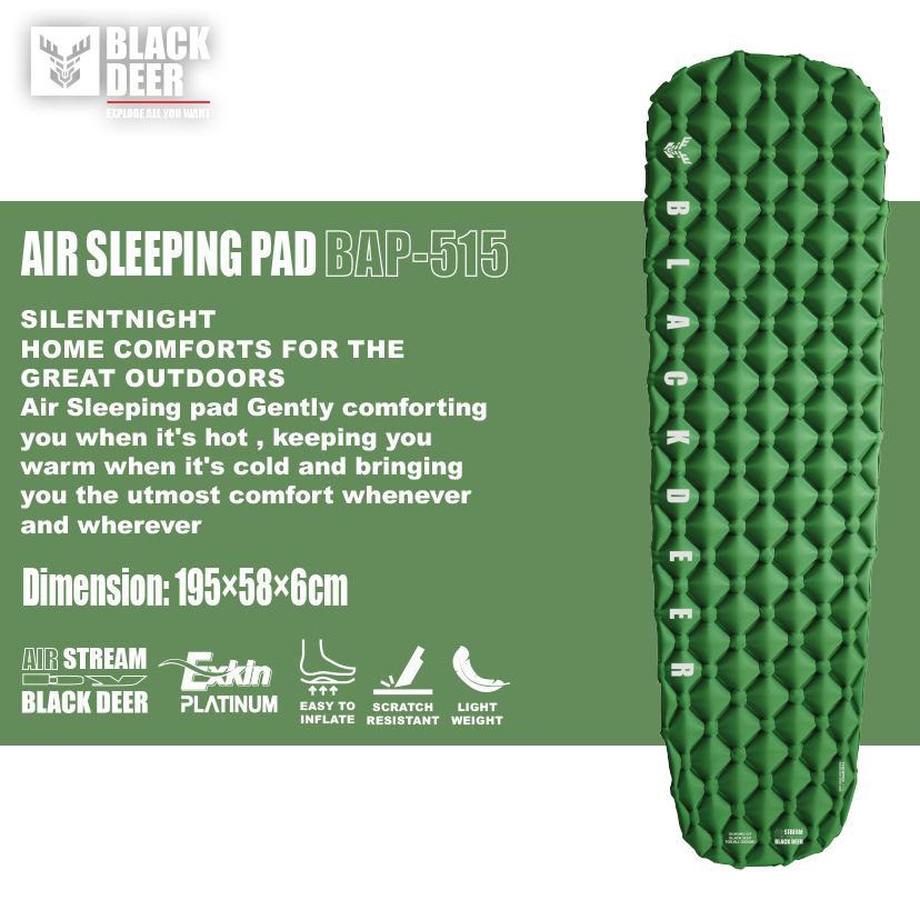- بیصدا: یکی از مشکلات رایج زیراندازهای بادی، صدای ناخوشایند هنگام حرکت روی آنهاست. زیرانداز بلک دیر -515BAP با طراحی خاص خود، بیصدا عمل میکند و هنگام جابهجایی یا چرخیدن در خواب، هیچ صدای مزاحمی ایجاد نمیکند.